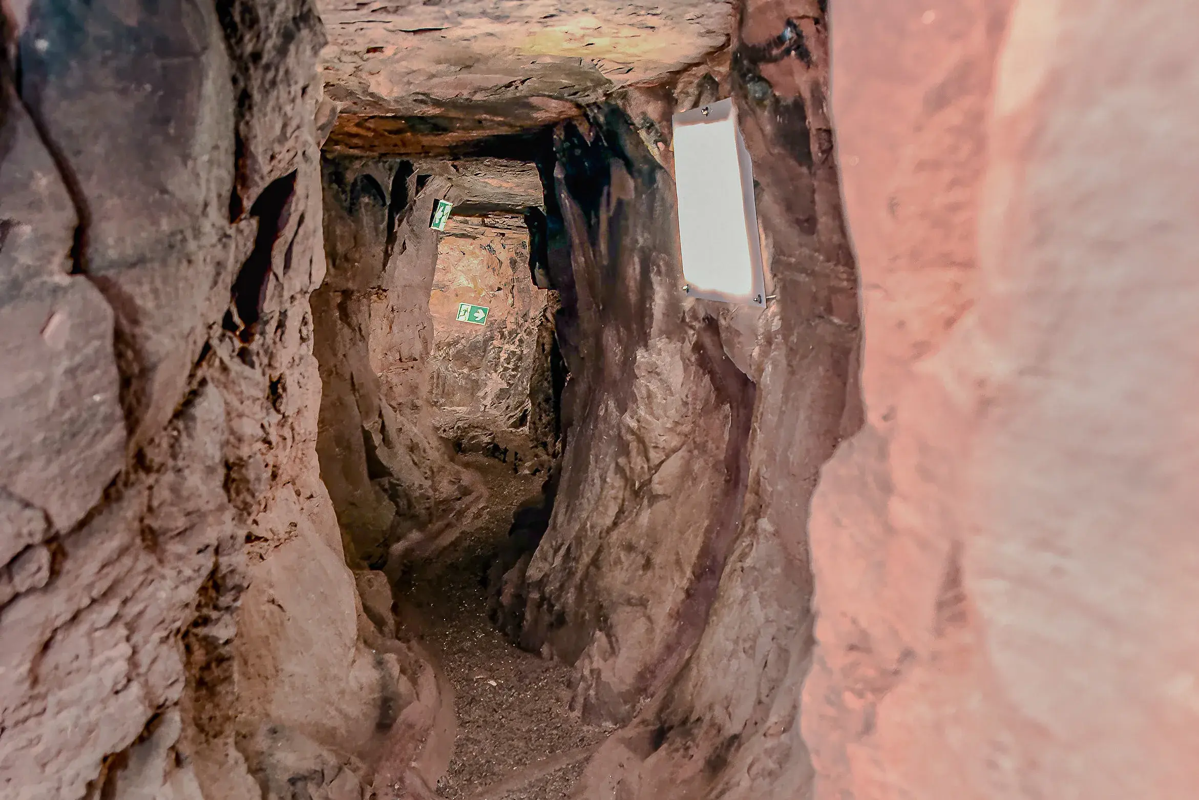 Blick durch den Brunnenstollen der Burgfeste Dilsberg