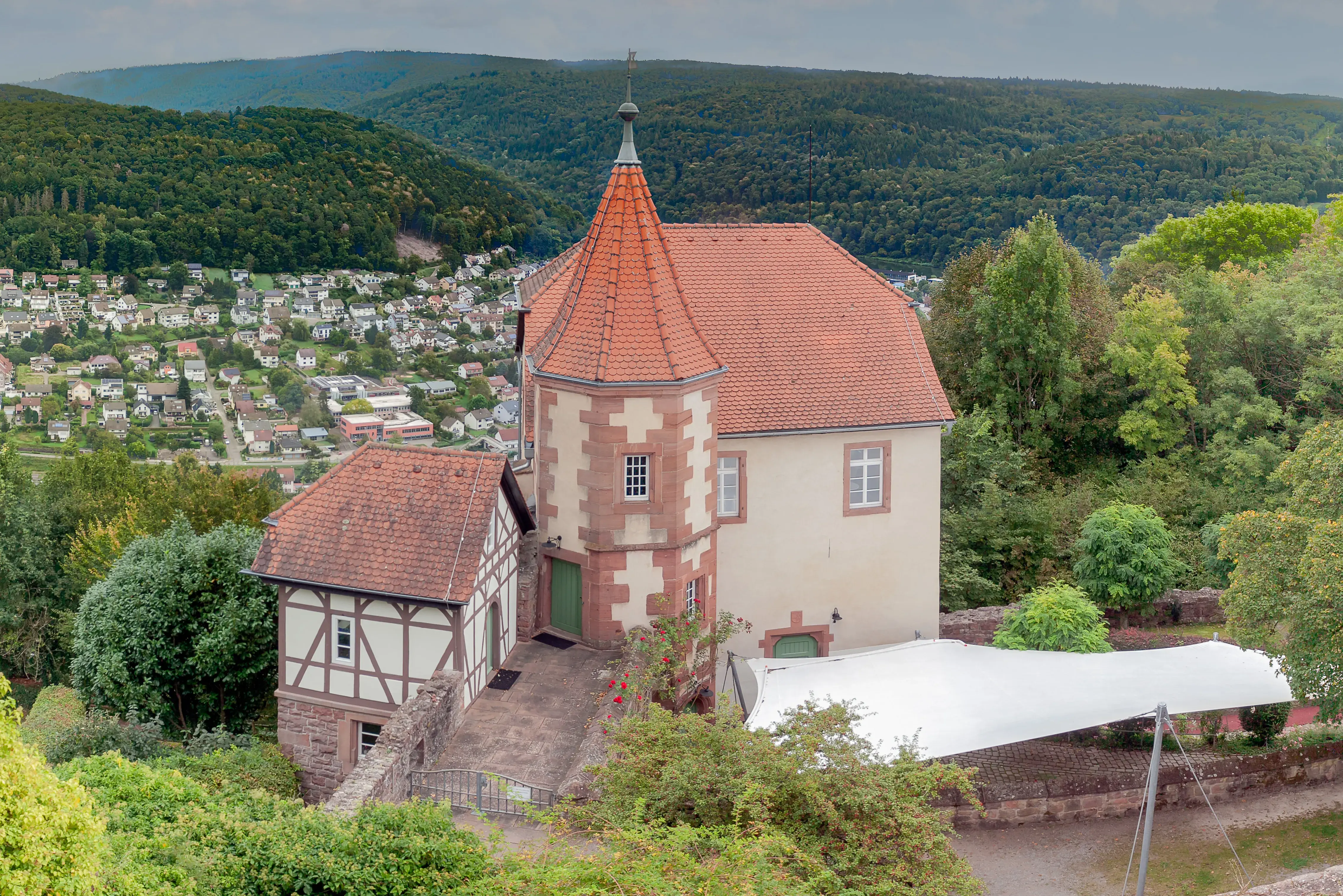 Mit Blick auf die Stadt Dilsberg.